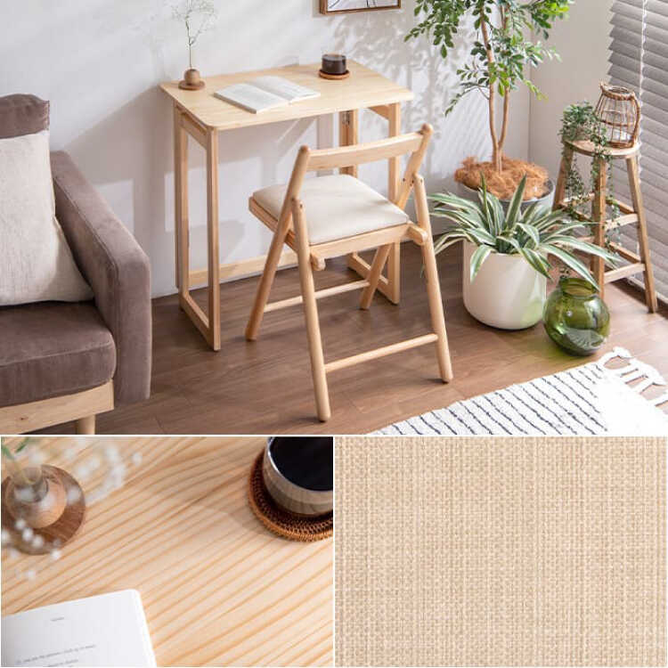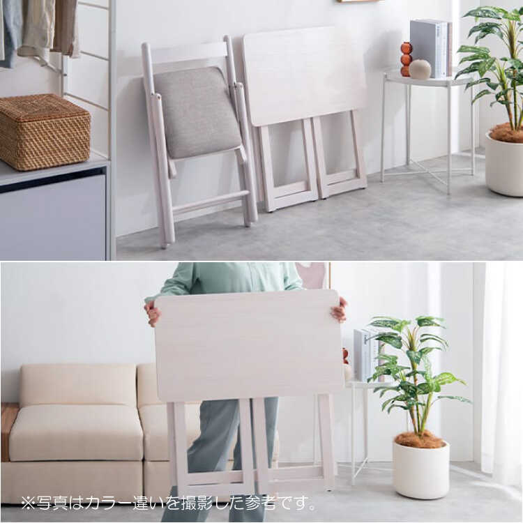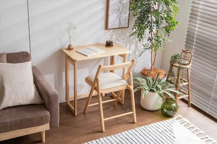 スリムに折りたためる!リビングでも使いやすいコンパクト机&チェアセット。