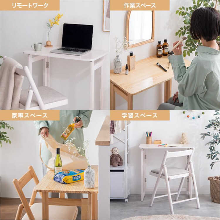 幅70cmのデスクとチェアがセットになっているため、在宅や作業台、お子様の学習スペースなど様々な用途でお使いいただけます。