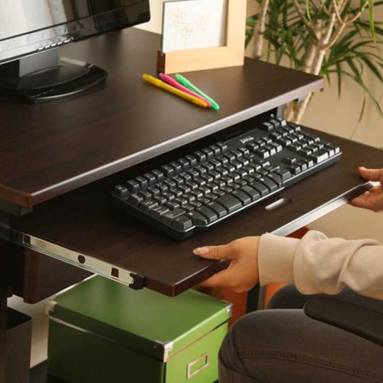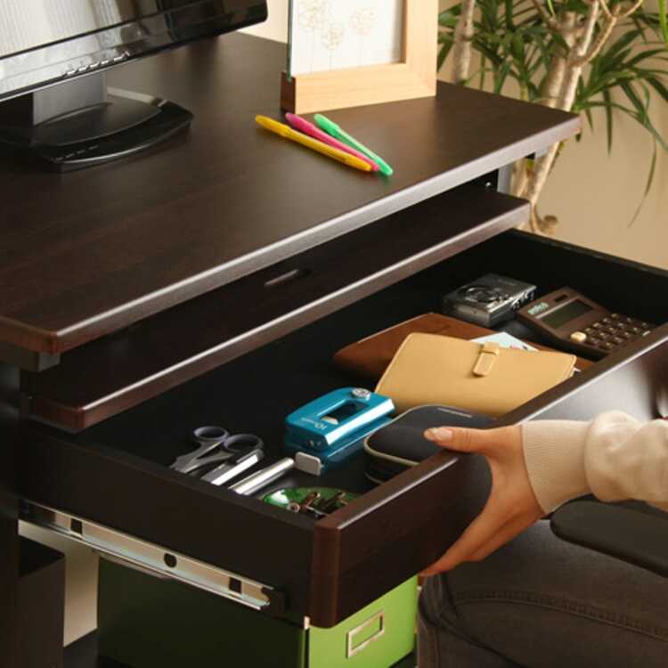 その理由はキーボードを乗せるトレーと引出し収納がそれぞれ独立して引き出せるので、作業に合わせたスペースが確保できるから。