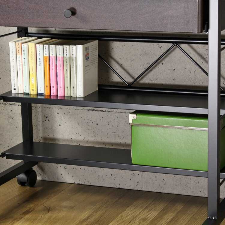 天板上に棚が設けられており、場所を取りがちなプリンターを乗せるのに最適。