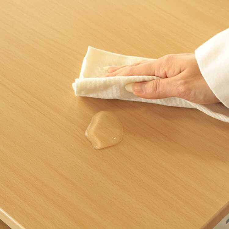天板にはグレードの高いプリント化粧紙を採用しており、水分もはじくので、飲み物などがこぼれてもすぐに拭けばダメージが少なく済みます。