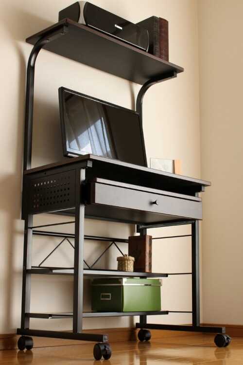 DE-2091 キャスター付き多機能パソコンデスク・幅75ハイタイプ