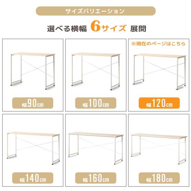 幅120cm・シンプルでスリムなパソコン机(6サイズから組み合わせ可能)