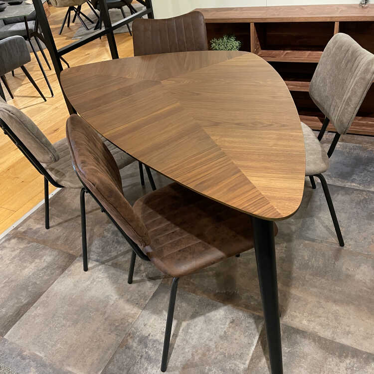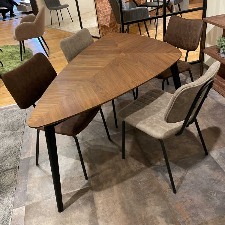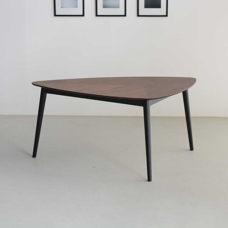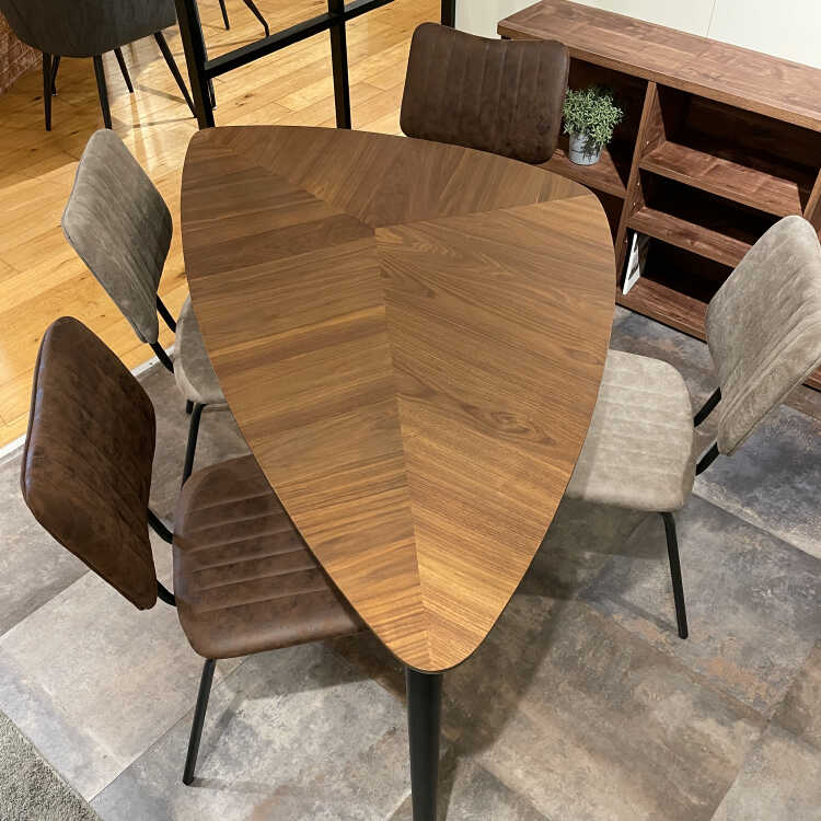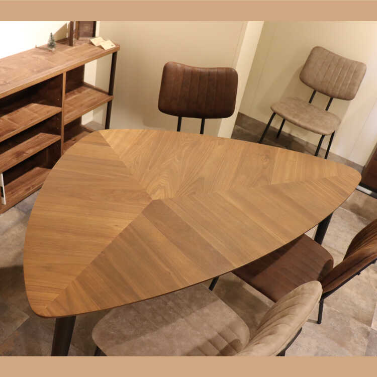 一目見れば忘れられない、リーフ型の三角形が印象的なデスク。