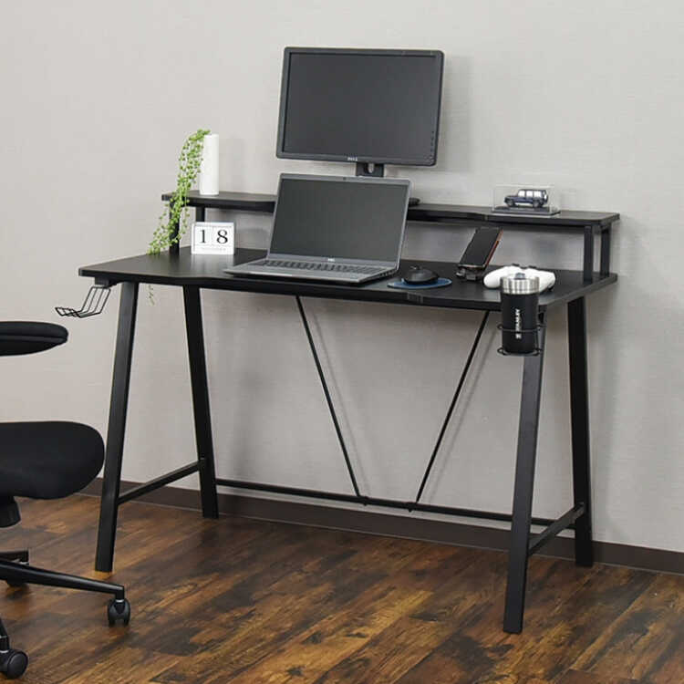 幅120cm・黒ブラック・ゲーミングデスク(モニタースタンド付き・メラミン貼り)