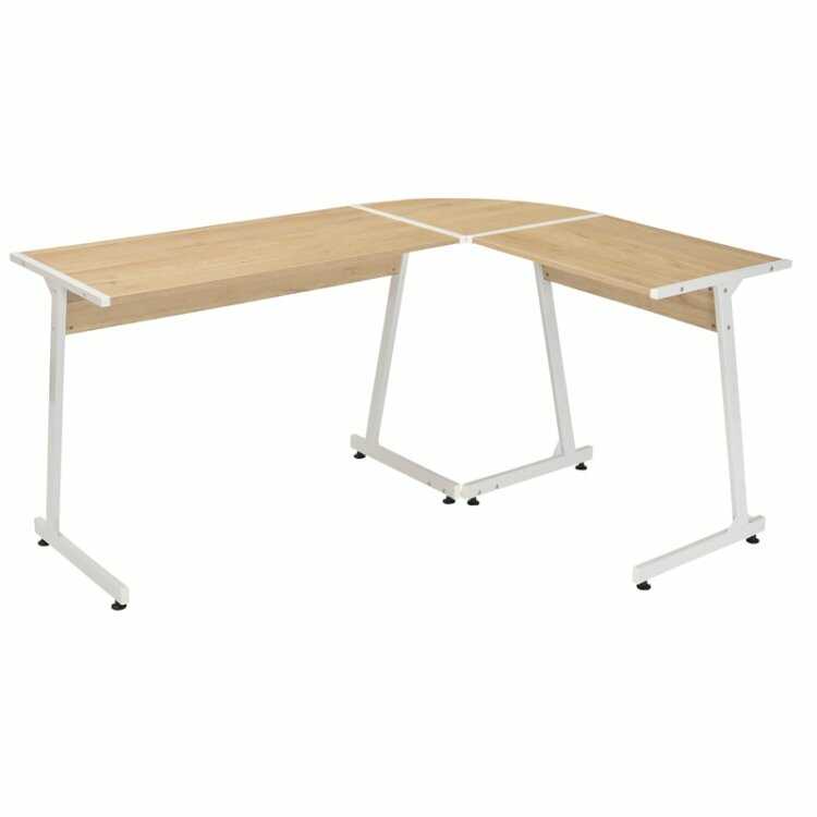 DE-2114 エル字コーナーデスク・ナチュラル色メラミン・幅147cm