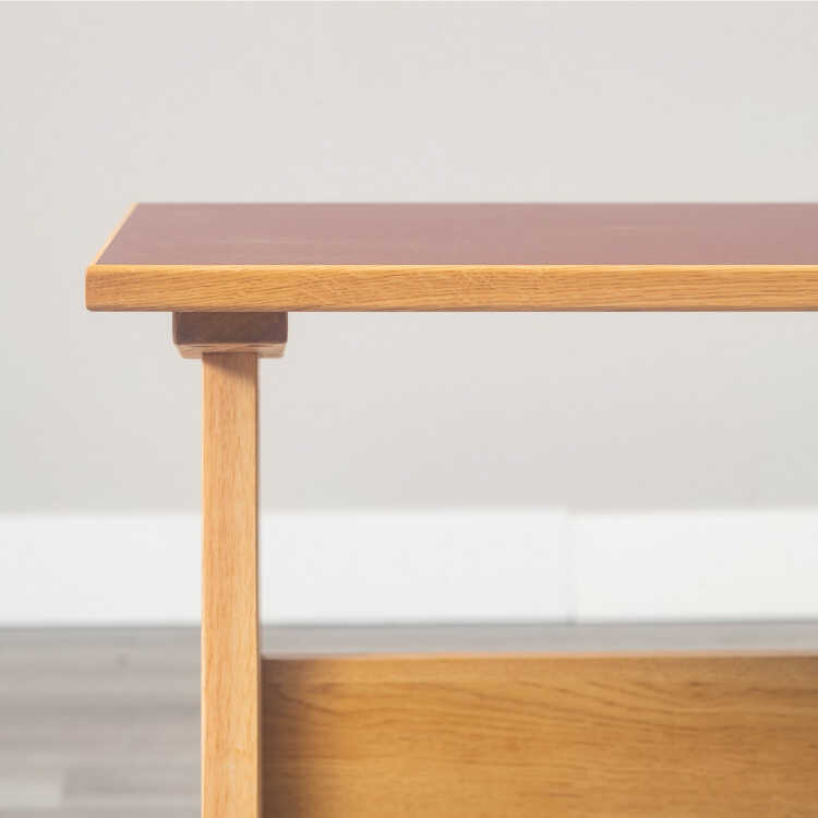 天板り四辺のフチをオーク材で小口仕上げしており、丁寧な作りが高級感を感じさせます。