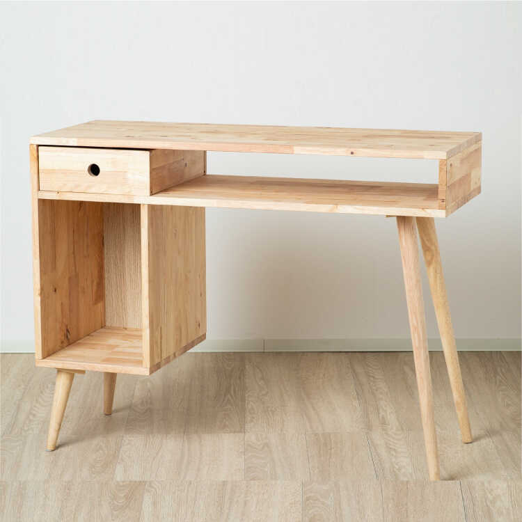 幅100cm・収納力抜群の天然木無垢製・片袖デスク(ホルムアルデヒド軽減対策済み)