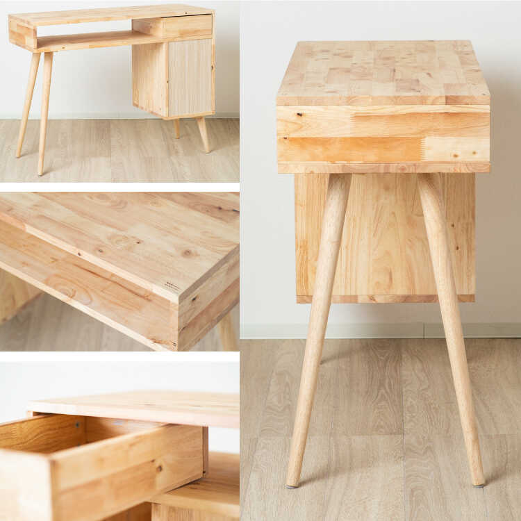 DE-2120 収納力抜群の天然木無垢製・片袖デスク・幅100cm