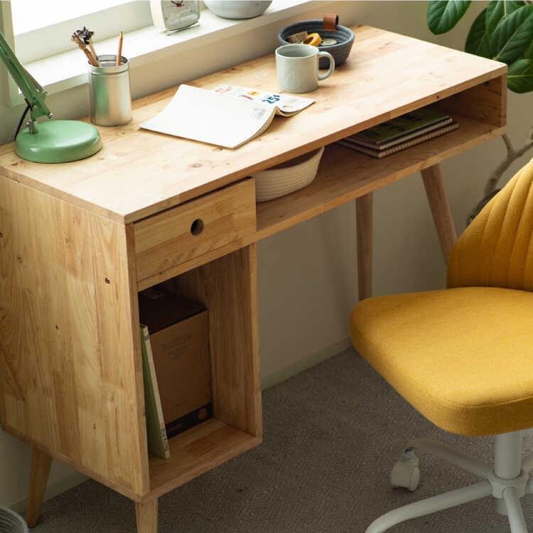 収納力抜群で無垢製…魅力溢れる片袖デスク