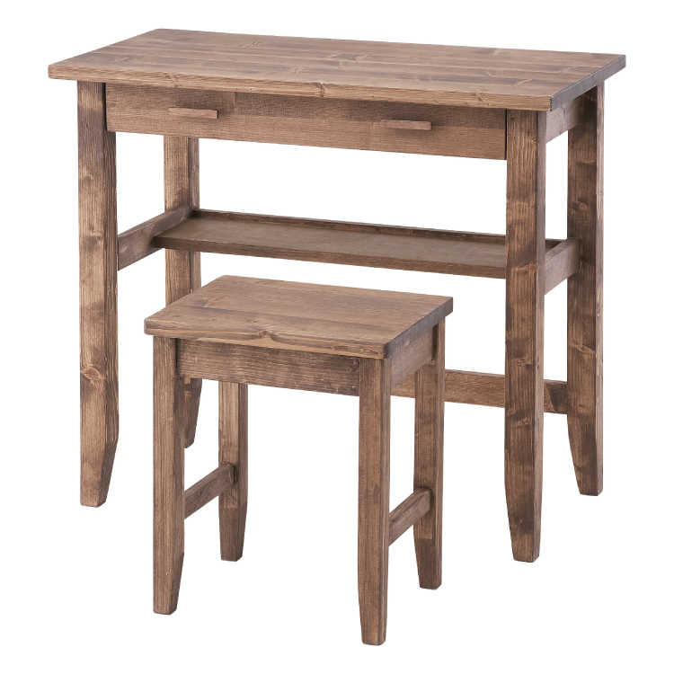 天然木パイン材を使用した自然の木目が美しいデスク&スツールの2点セット。