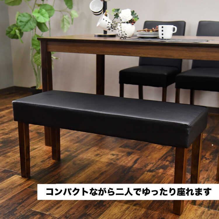 幅90cm・シンプルで汚れと水に強いPVCレザー製ダイニングベンチ(ブラック/ホワイト)