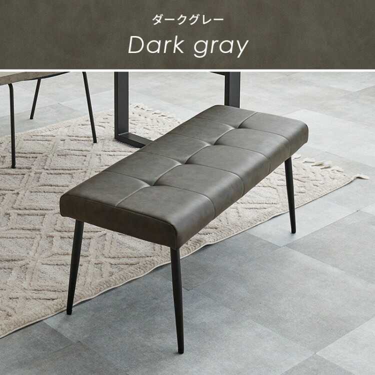 CH-4274 ヴィンテージ風エイジング加工レザー製ダイニングベンチ・幅100cmダークグレー