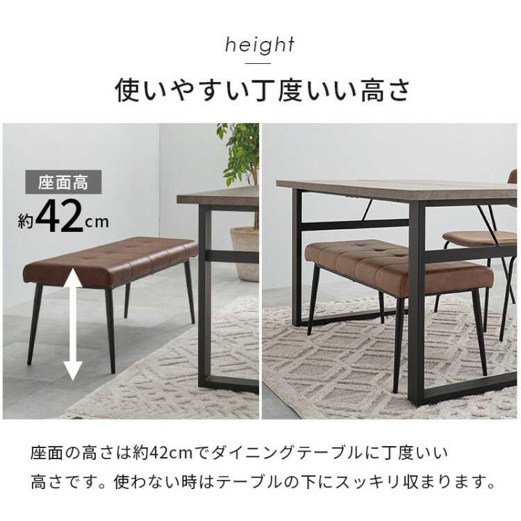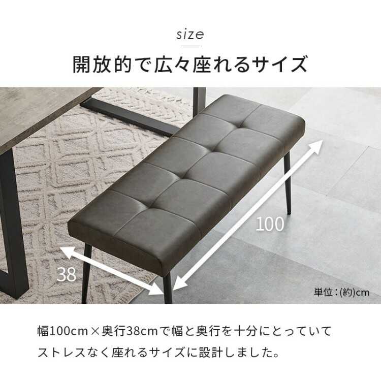 サイズ 幅100cm、奥行38cm、座面高42cm 材質 PUレザー、スチール(粉体塗装) 構造仕様 お客様で組み立てていただく商品です