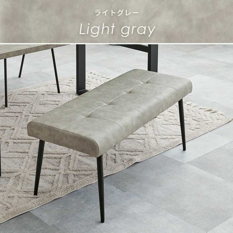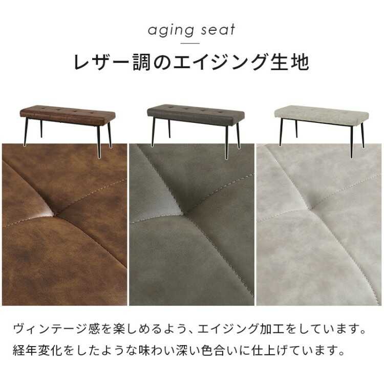 幅100cm・ヴィンテージ風エイジング加工レザー製ダイニングベンチ(ライトグレー)
