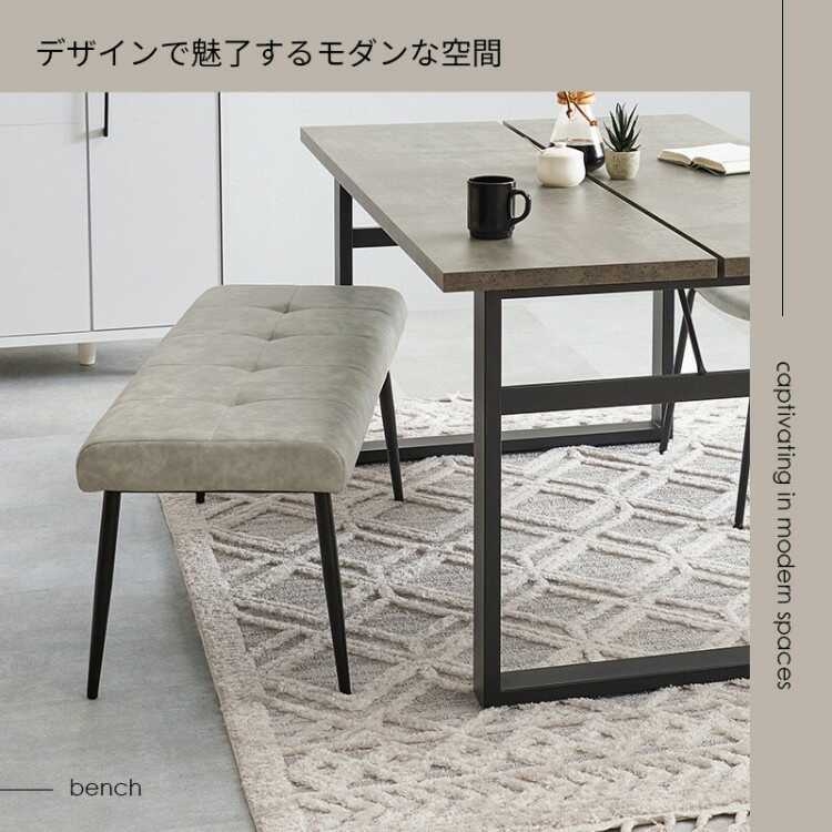 CH-4275 ヴィンテージ風エイジング加工レザー製ダイニングベンチ・幅100cmライトグレー
