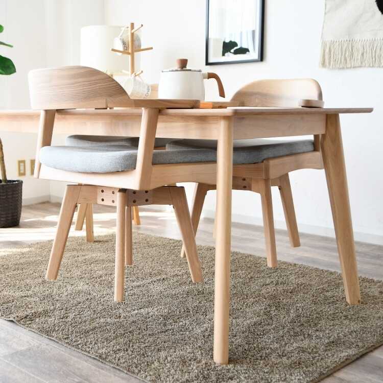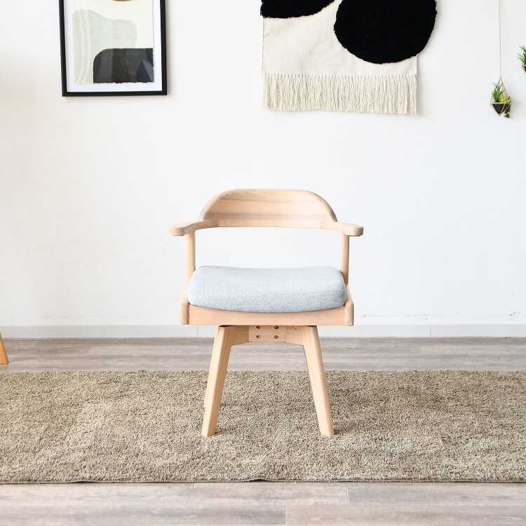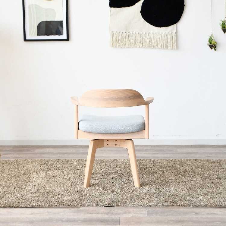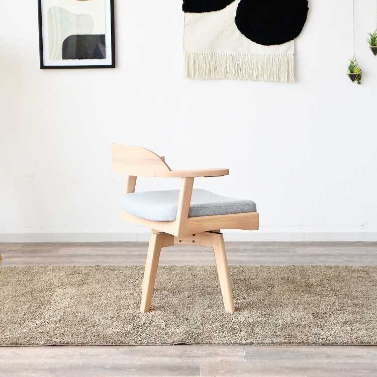 天板に掛けられる!フレームの曲線が美しい回転ダイニングチェア(天然木製フレーム・布ファブリック張り)