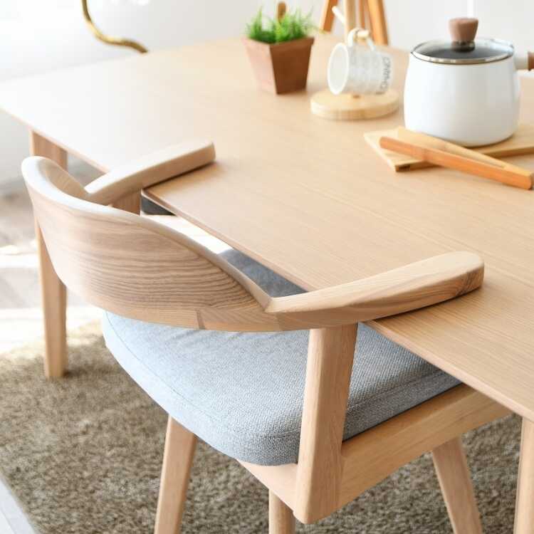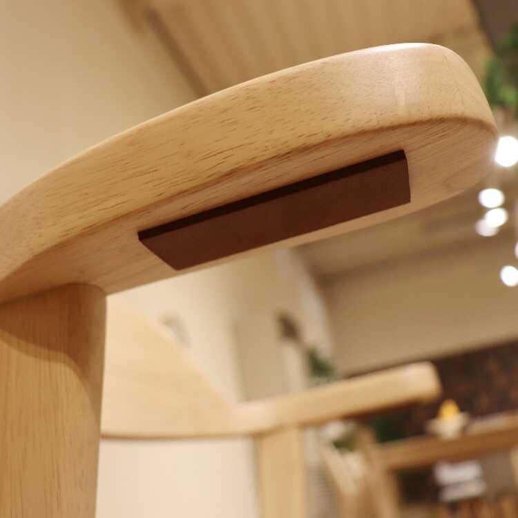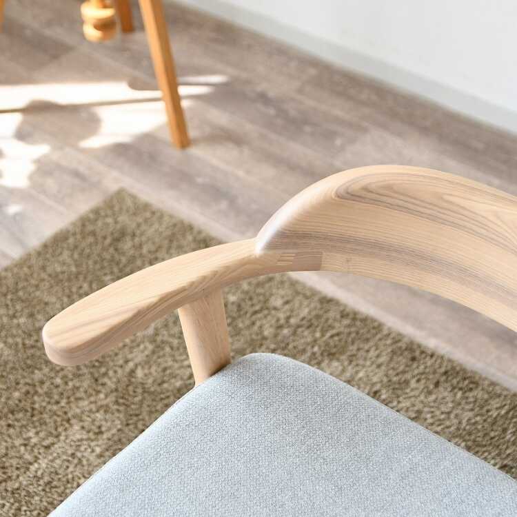 座った際に背中を受け止める背もたれのライン、テーブルの幕板との衝突を気にすることなく肘を乗せられるアームの丸み、その他、角は全て丸みを帯びた丁寧な加工が施されています。