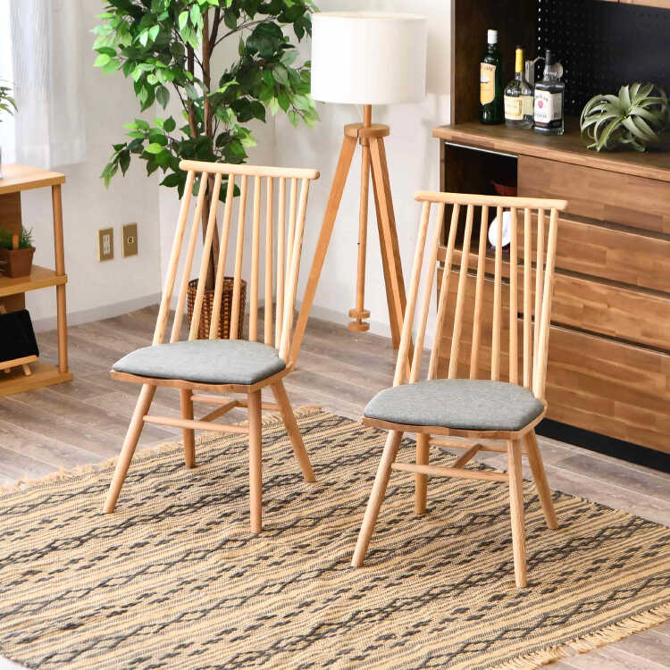 縦格子デザインの板座・高級ダイニングチェア(座面クッション付き・ホワイト色・天然木アッシュ製)