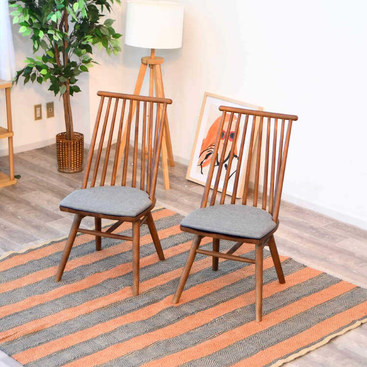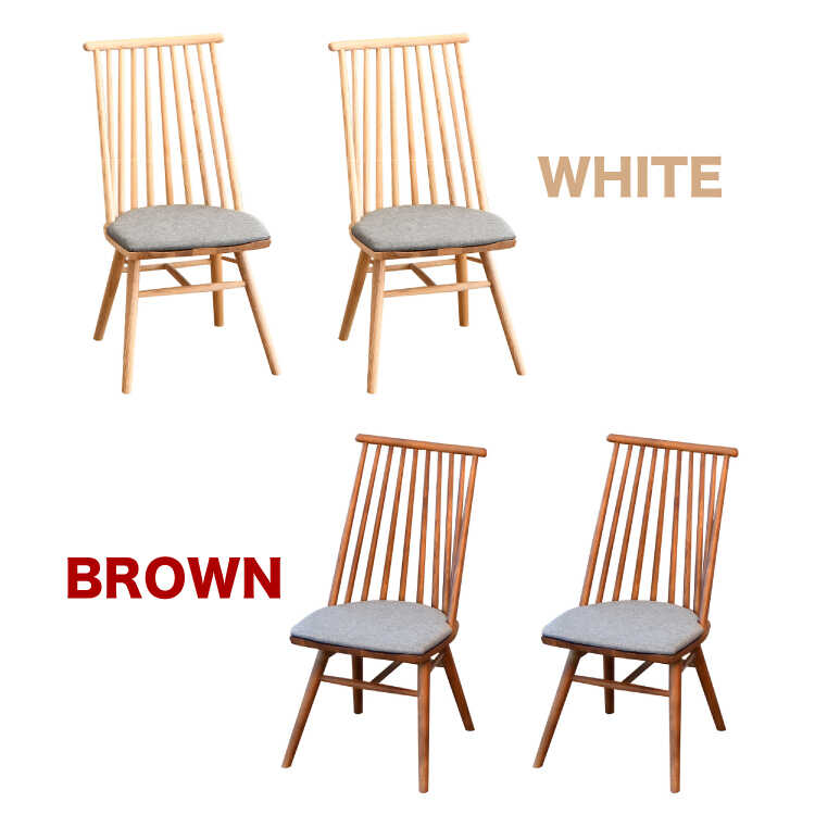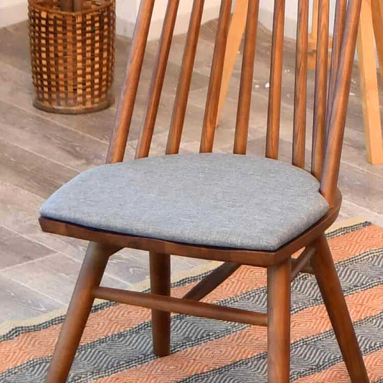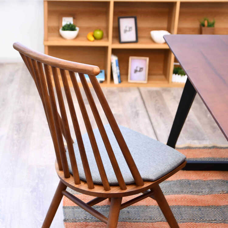 縦格子デザインの板座・高級食卓用チェア(座面クッション付き・ブラウン色・天然木アッシュ製)