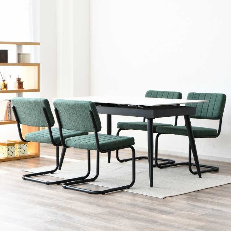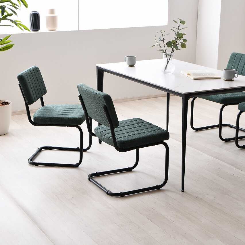 コの字デザイン脚がオシャレでしなり感が心地良いダイニングチェア(緑グリーン色)