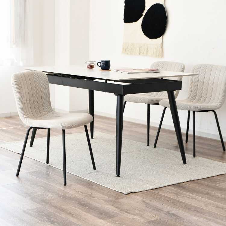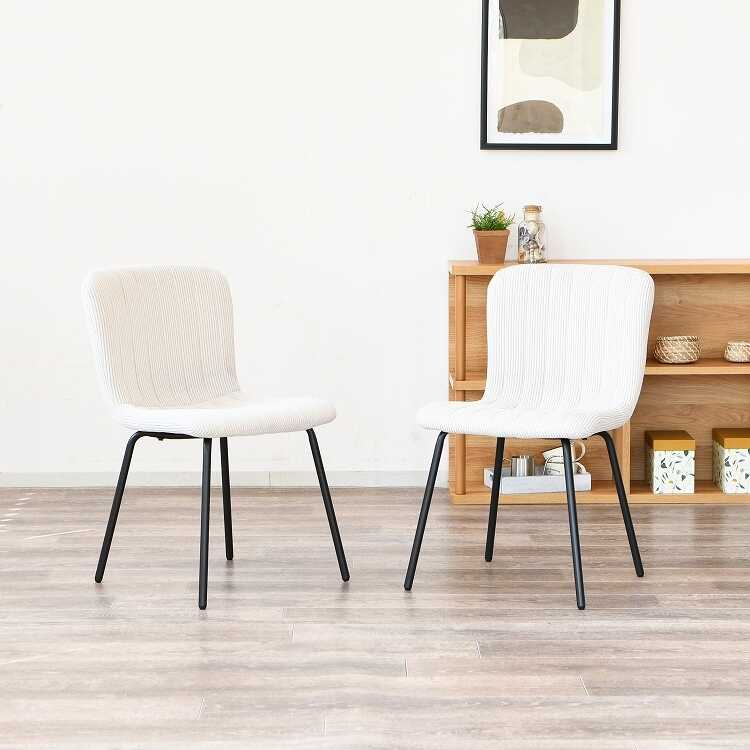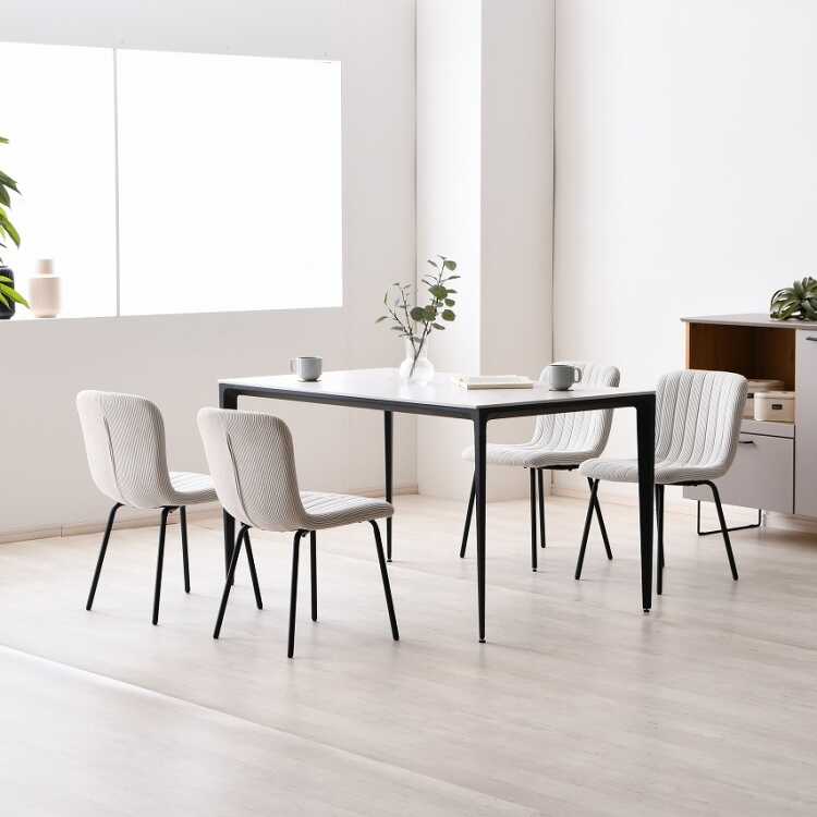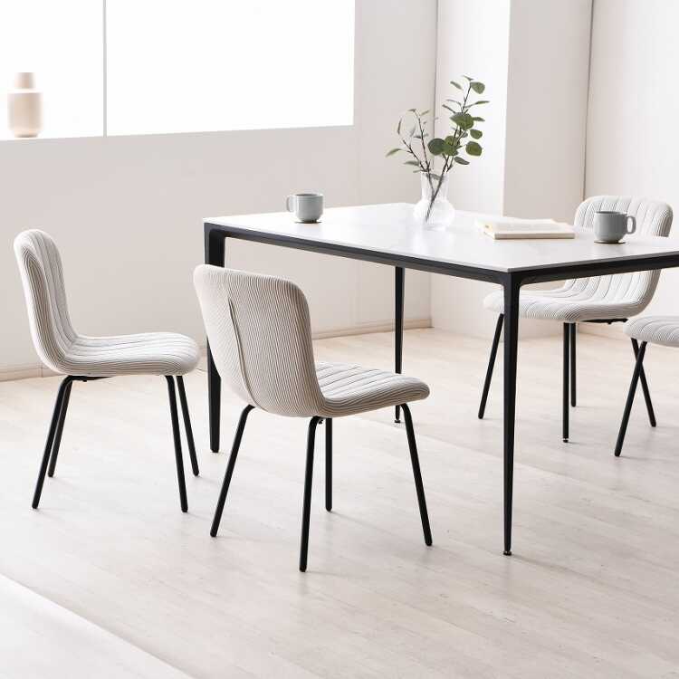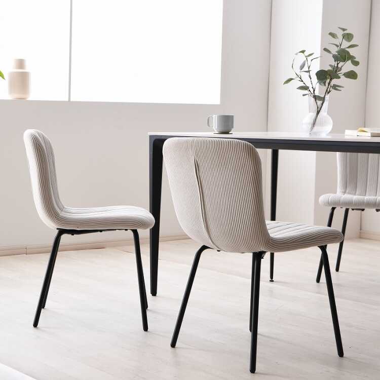 CH-4298 シンプル可愛い縦ストライプデザイン布製ダイニングチェア・ベージュ