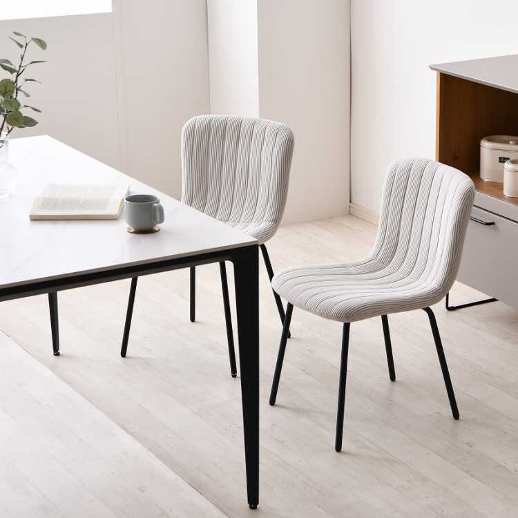 背もたれから座面にかけて縦ストライプに入ったラインが可愛いダイニングチェア。