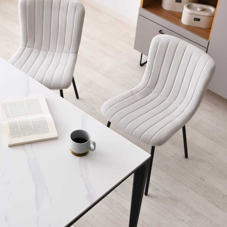 シンプルで可愛い縦ストライプデザインの布製ダイニングチェア(ベージュ色)