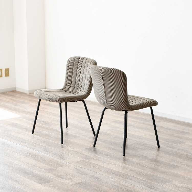 背もたれから座面にかけて縦ストライプに入ったラインが可愛い食卓用チェア。