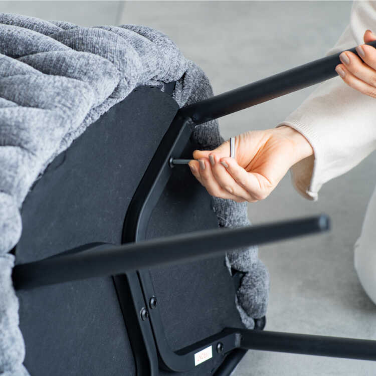 サイズ 幅60cm、奥行56cm、高さ76cm、座面高42cm、重量8.0kg 材質 ファブリック、スチール 構造仕様 お客様で組み立てていただく商品です