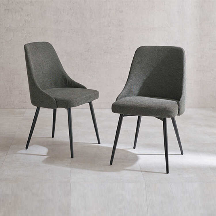 豊かなフィット感と手触りが心地良いファブリック張りダイニングチェア(ダークグレー色)