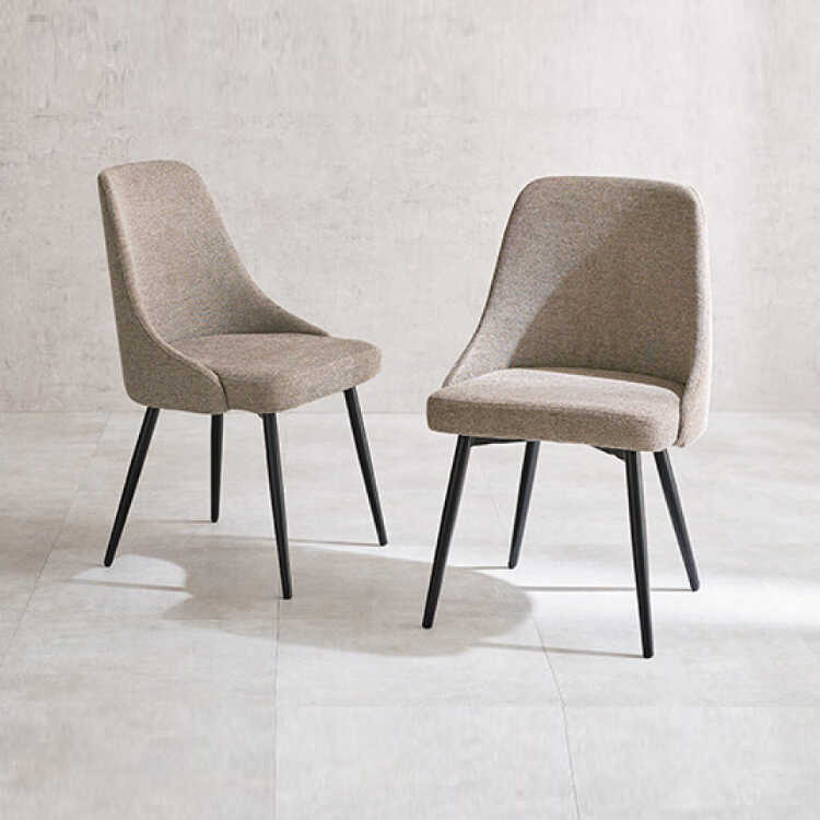 豊かなフィット感と手触りが心地良いファブリック張りのダイニングチェア。