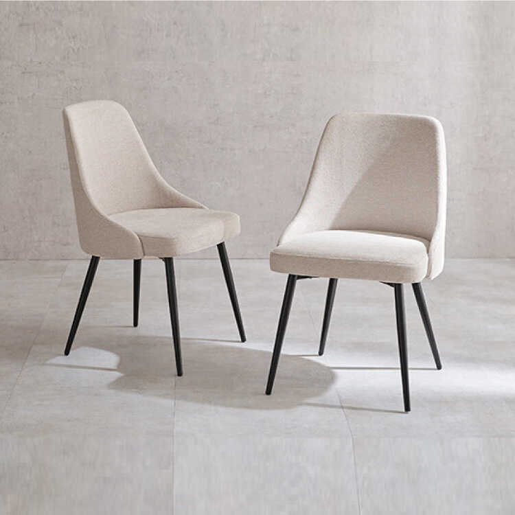豊かなフィット感と手触りが心地良いファブリック張りのダイニングチェア。