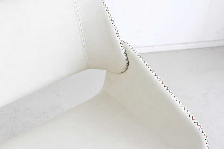 背もたれと座面部分の縁縫製はコントラストが協調されるようあえてカラーを変え、さらに千鳥縫いを採用しており、細部まで拘りを感じさせます。