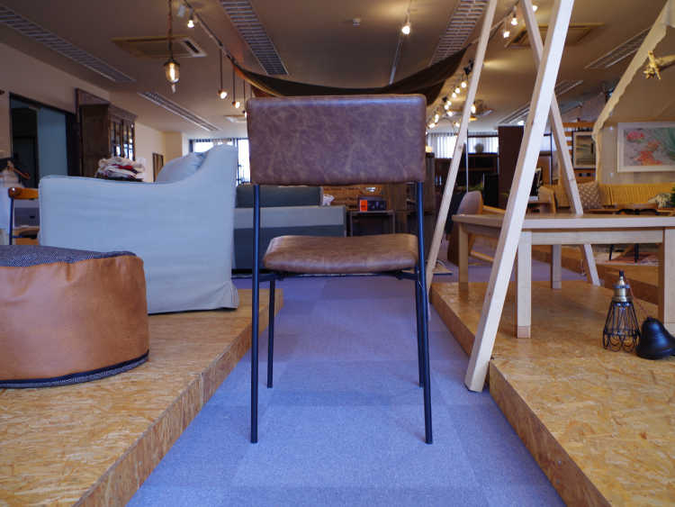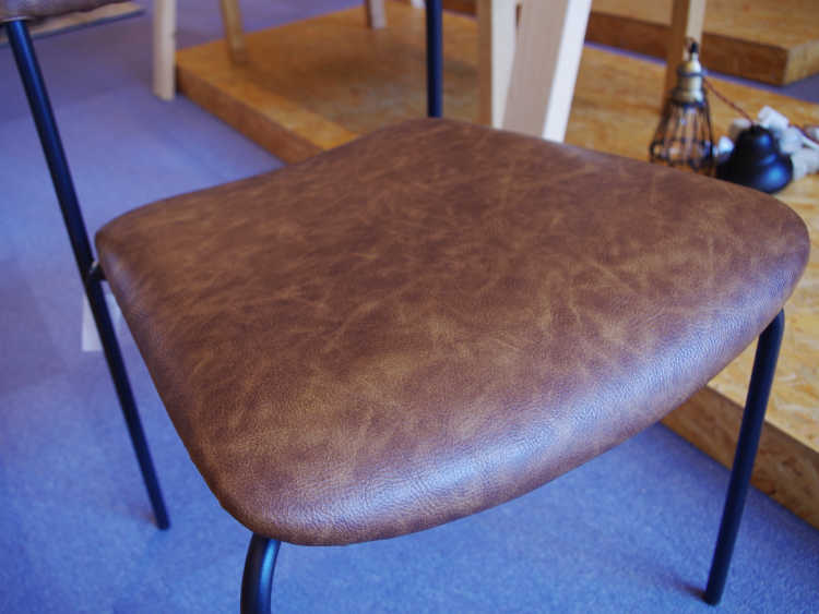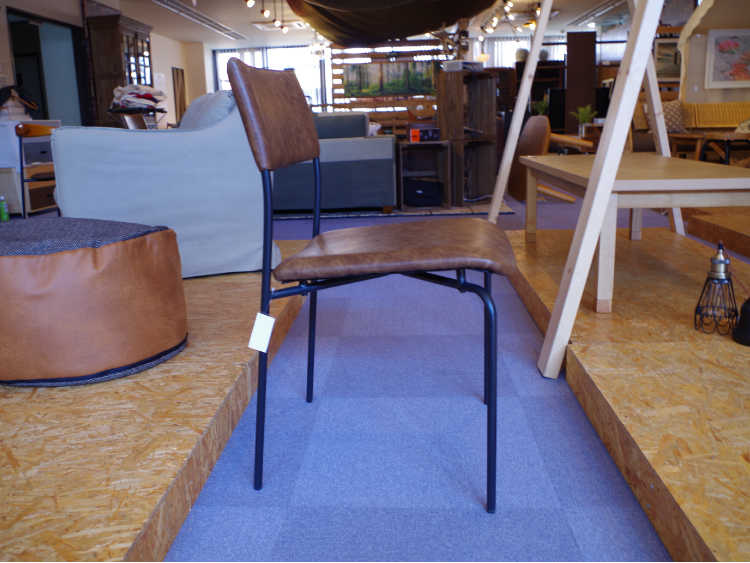 ソフトレザー&スチールを組み合わたヴィンテージ風ダイニングチェア。