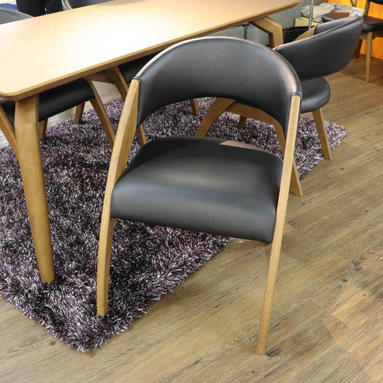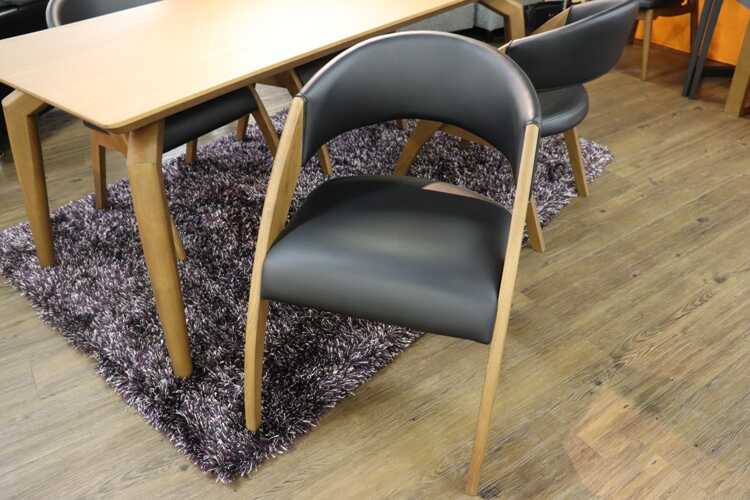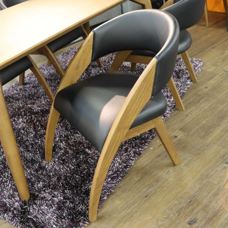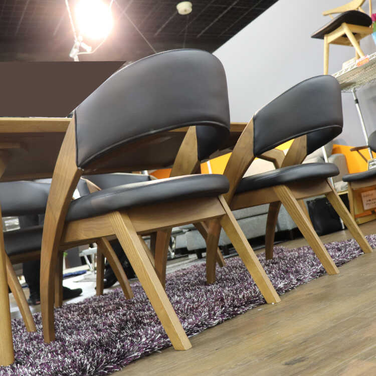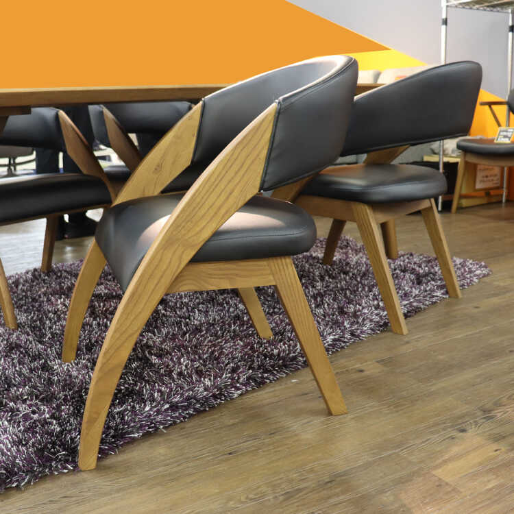 天然木無垢材を使用した前脚ラインがハイデザインなダイニングチェア。