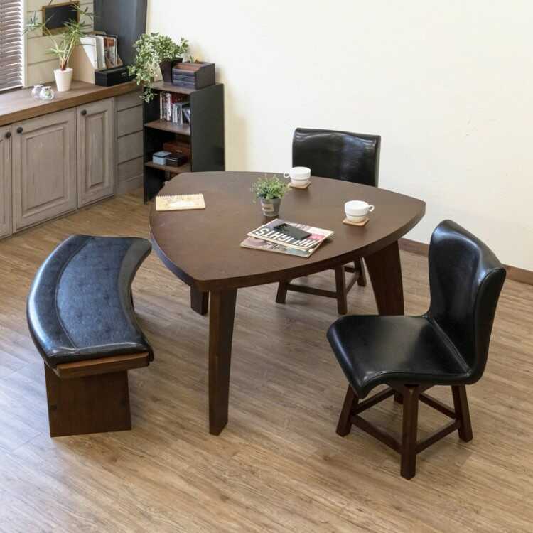 脚は濃淡のある色合いが特徴的な天然木アカシア材を採用。レザーの張地とも相性が良く、北欧やモダン・ヴィンテージやレトロなど様々なお部屋のテイストに馴染みます。また、同シリーズでベンチやダイニングテーブルもご用意しています。トータルコーディネートすると、より一層豪華で統一感のあるダイニング空間を演出することができます。