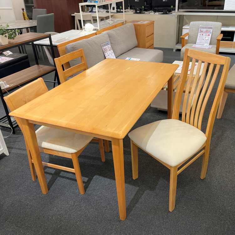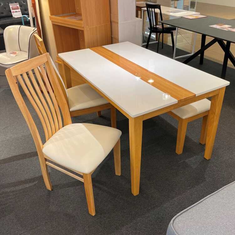 ナチュラル系としては若干、白木寄りの色合いなので、ナチュラル系のテーブルはもちろん、木目ホワイト系にも合わせられます。