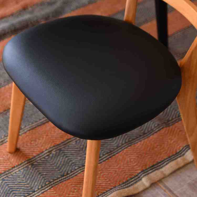 背中のフィット感が心地良い食卓チェア(天然木ラバーウッド製・PVCレザー張り)