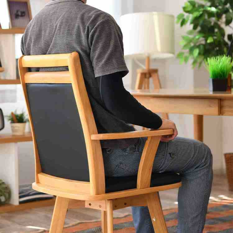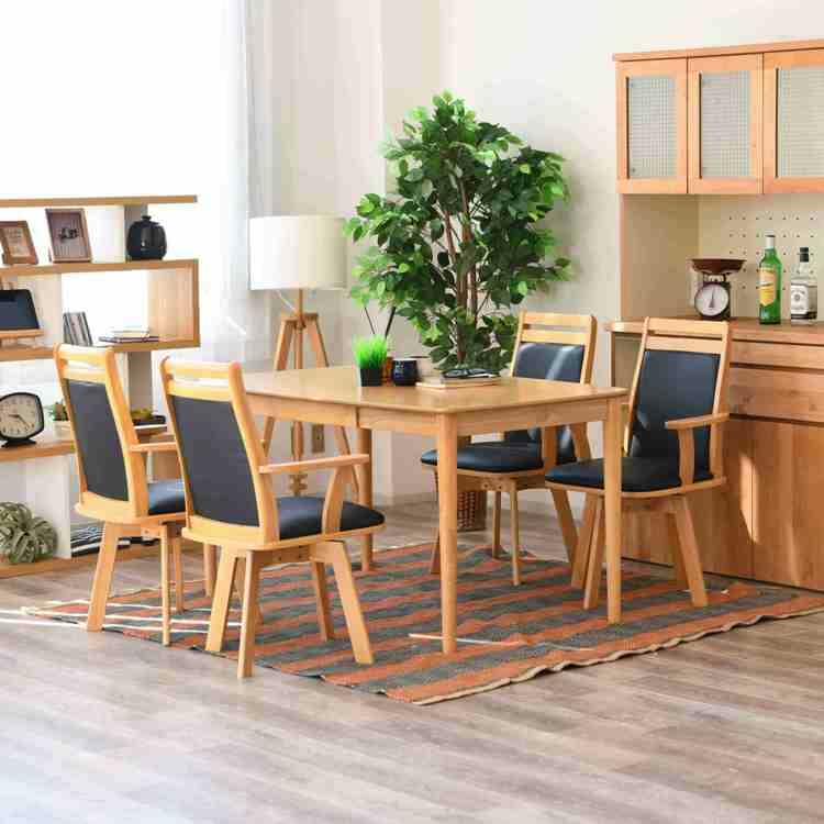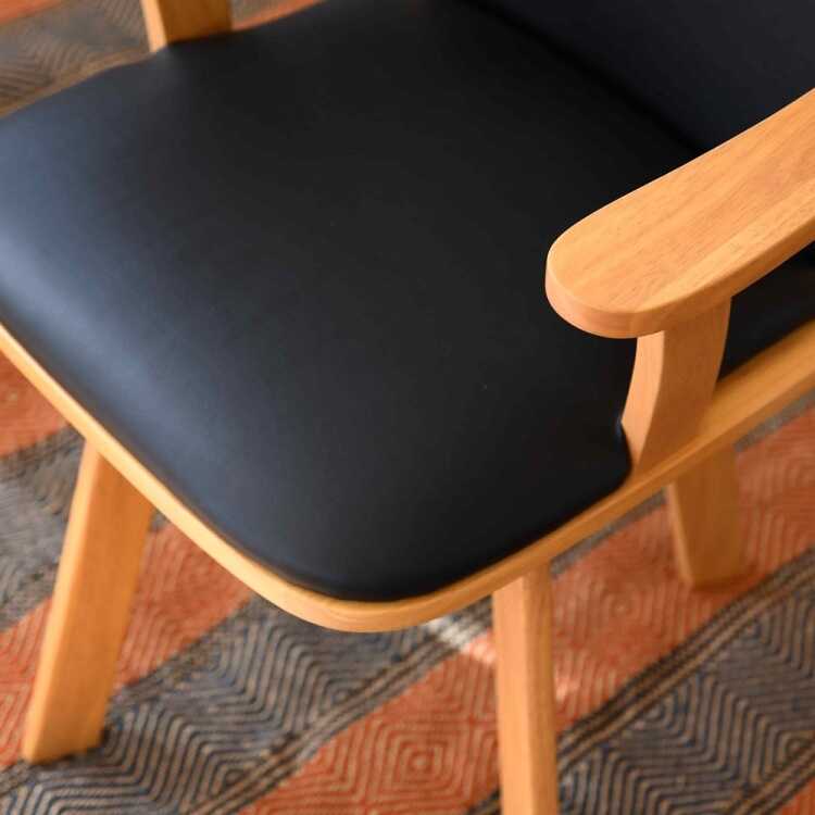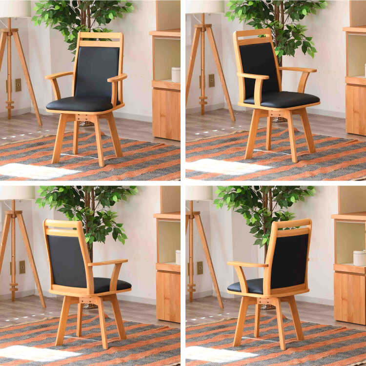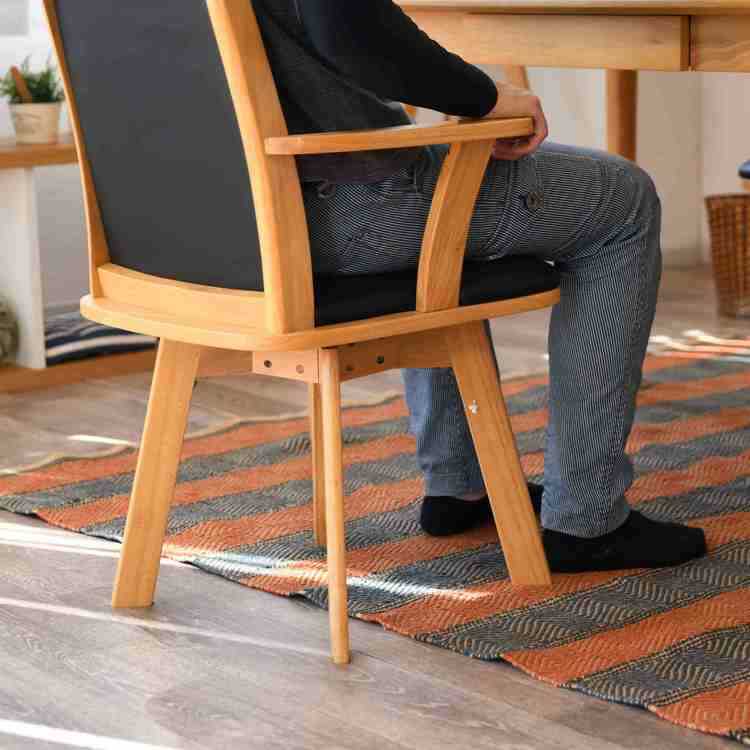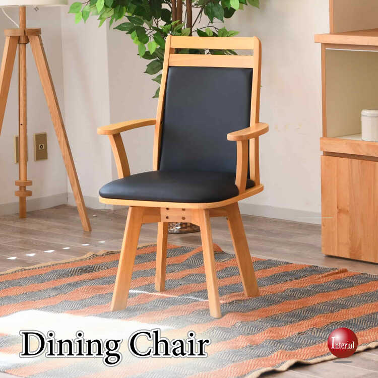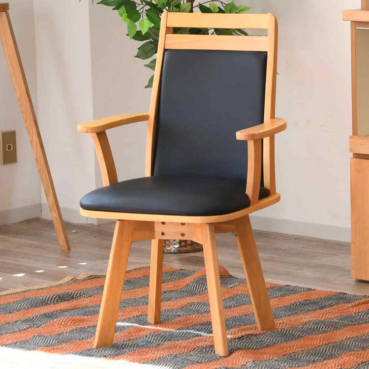 天然木製&PVCレザー製の肘付き回転ダイニングチェア(ナチュラル色・ラバーウッド材)
