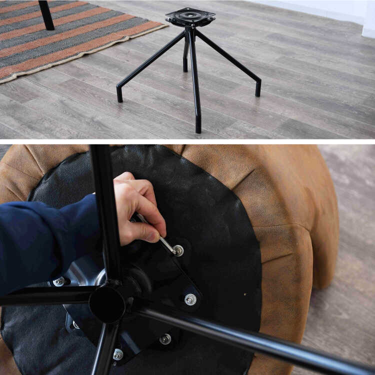 サイズ 幅55cm。奥行55cm、高さ82cm、座面高50cm 材質 アイアン、ファブリックレザー 構造仕様 お客様で組み立てていただく商品です