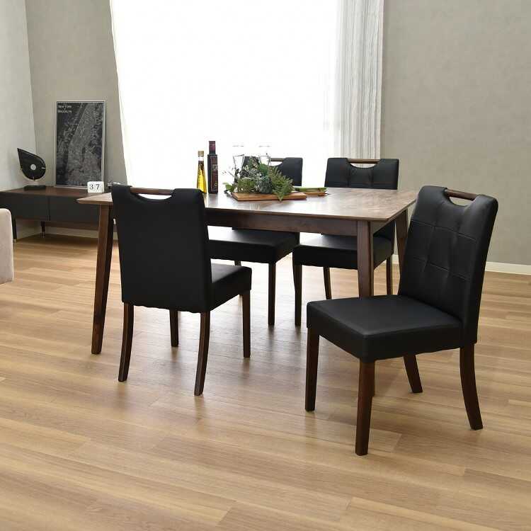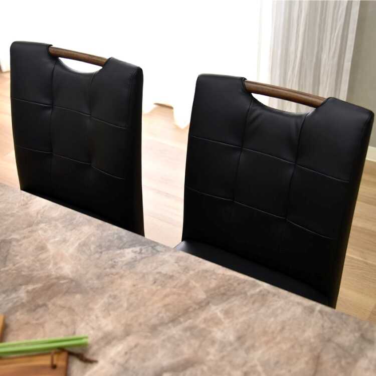 取っ手付きデザインのダイニングチェア(ブラック&ブラウン)