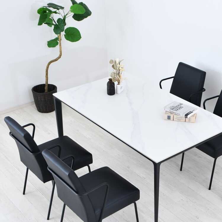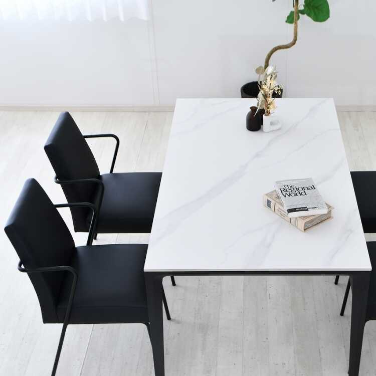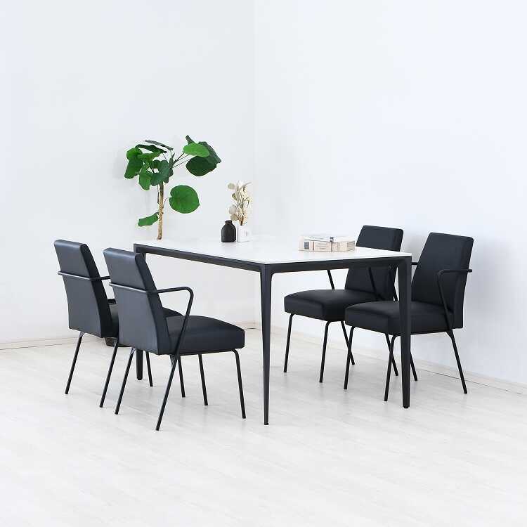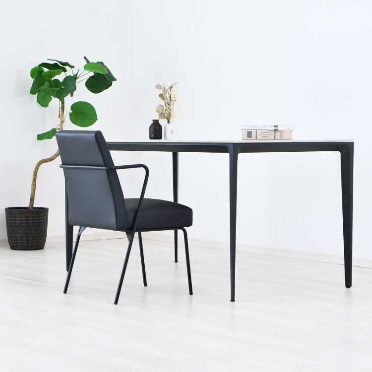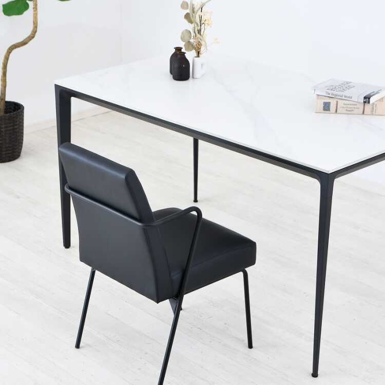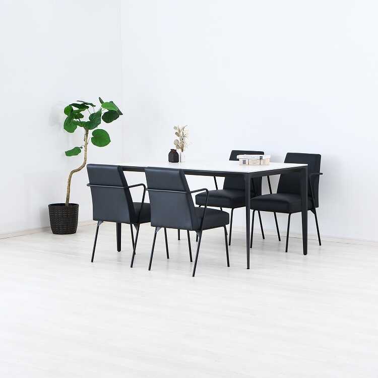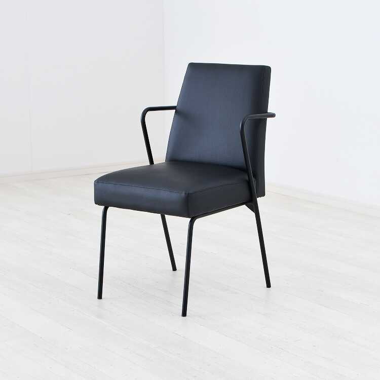 CH-4294 アームデザインのレザー製ダイニングチェア・黒ブラック