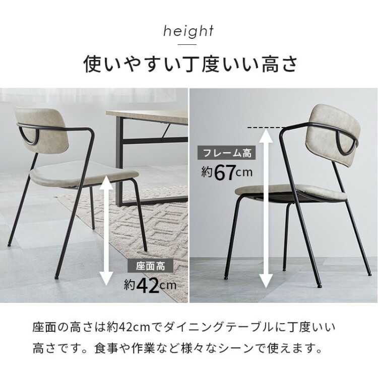 座面はダイニングチェアの高さとしては最も使いやすい範囲の42cm。