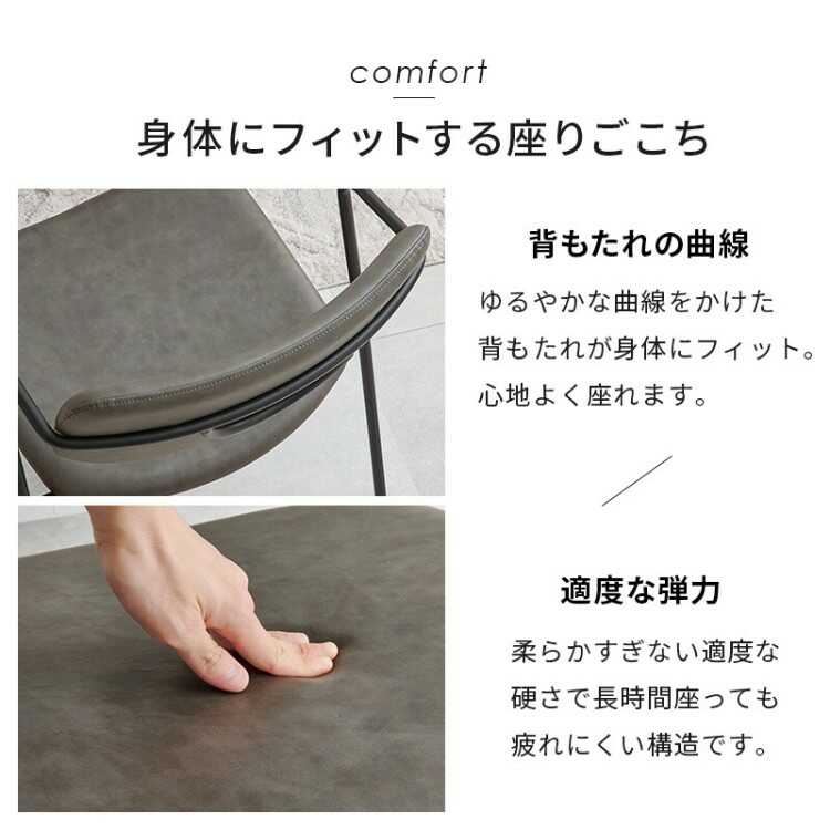 サイズ 幅52cm、奥行55cm、高さ75.5cm、座面高42cm 材質 PUレザー、スチール(粉体塗装) 構造仕様 お客様で組み立てていただく商品です
