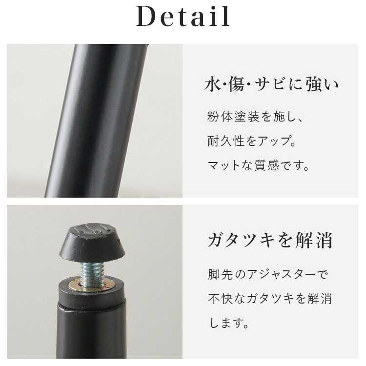 マットな質感のブラックカラーの塗装で、表面はキズや水分に強い粉体塗装で仕上げています。