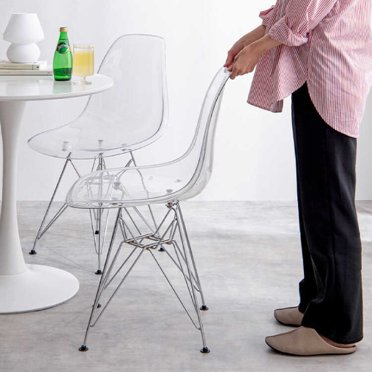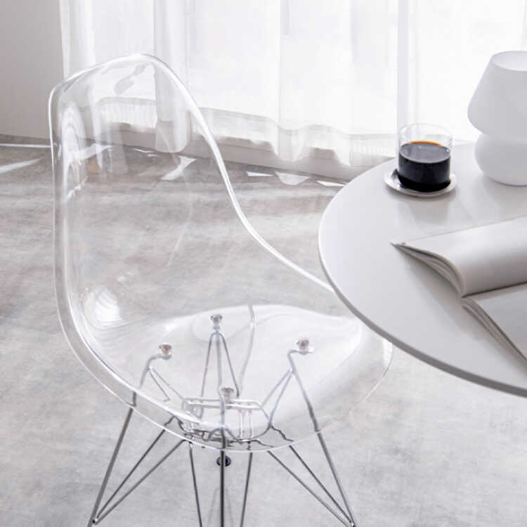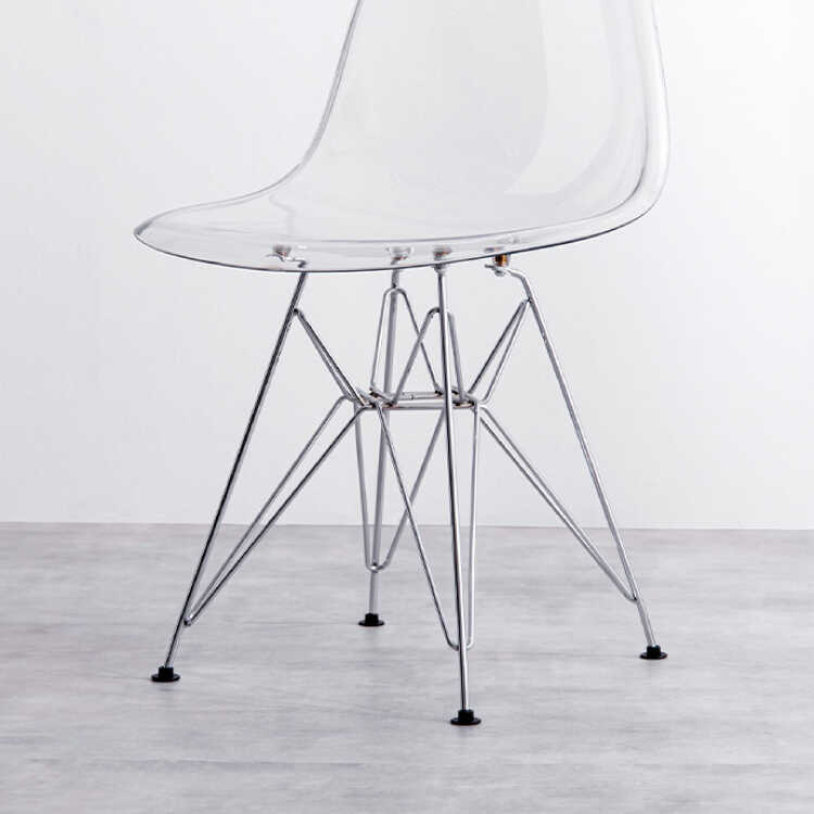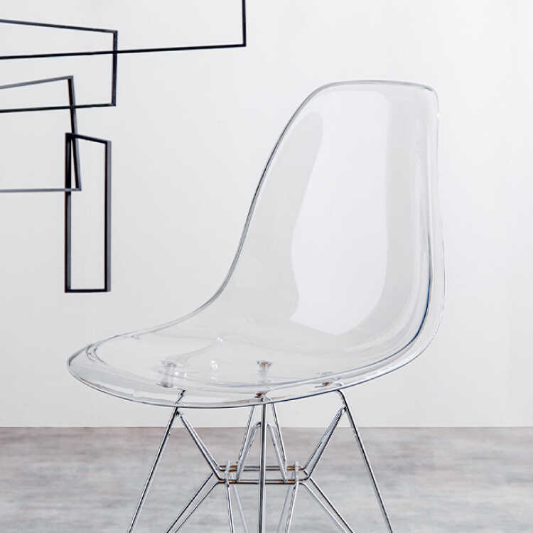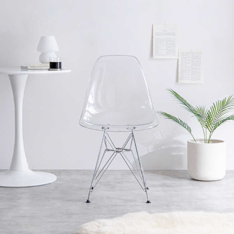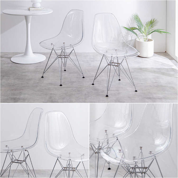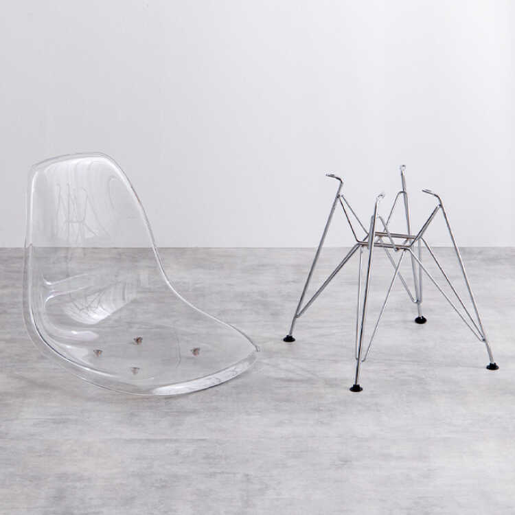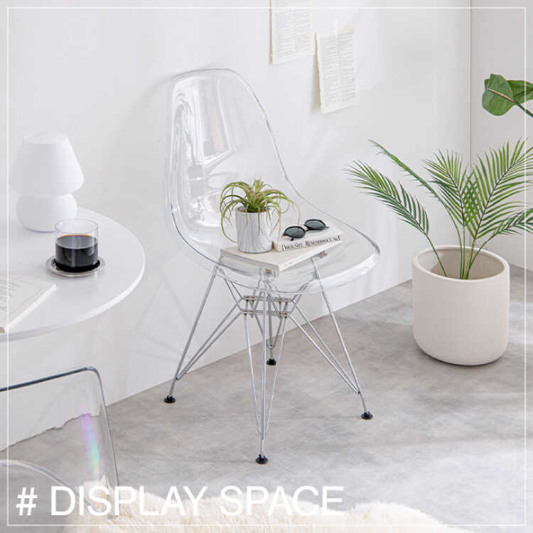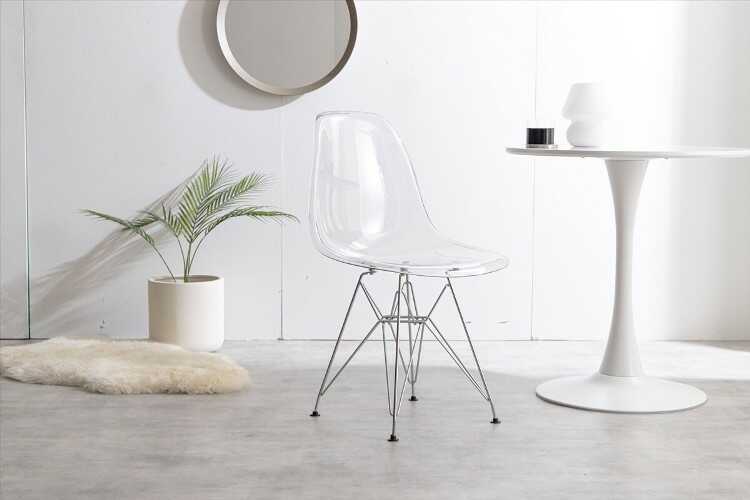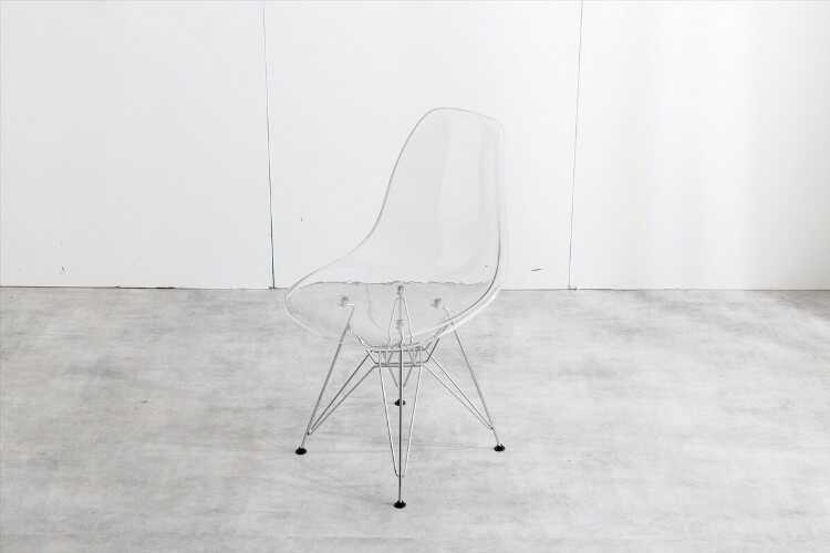 一度見ると忘れられない、透明クリアー色のイームズサイドシェルチェアDSR。