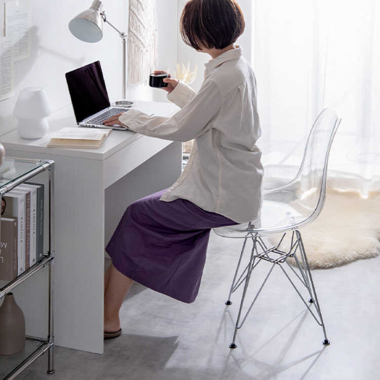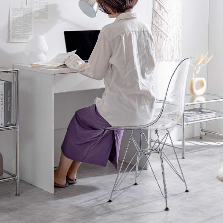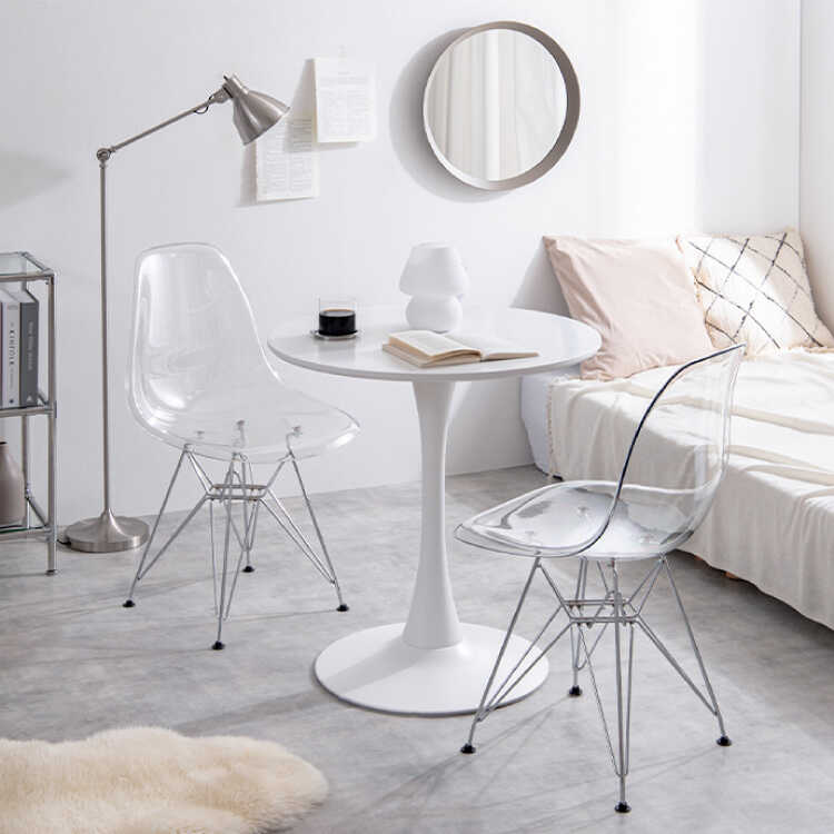 イームズサイドシェルチェアDSRは、お部屋をお洒落に見せてくれるだけでなく、透明感のあるクリアー色で圧迫感を感じさせません。