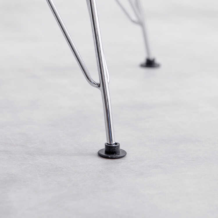 脚はスタイリッシュなスチール脚。クリアーな座部に馴染むシルバー色です。