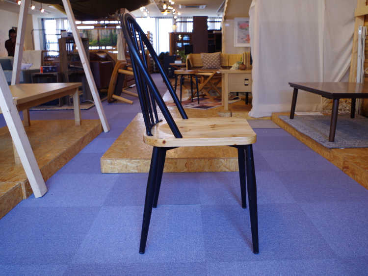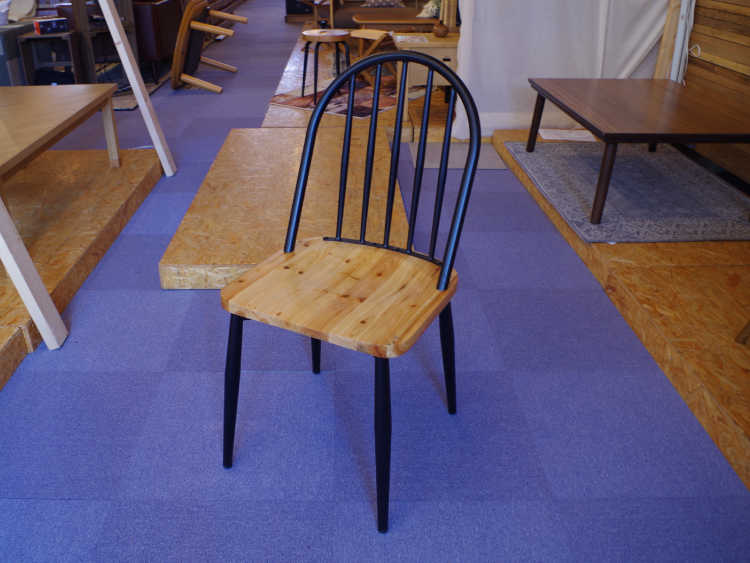 天然木とスチールを組み合わせたアイアン調のお洒落なダイニングチェア。